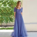 Limited Price Graceful A Line Lavender Tulle Short Sleeve Mother of the Bride Dresses Plunge V Neckline Pleated Wedding Party Gowns Back Out with Free Worldwide Shipping!