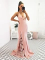 Cheap Price Evening Dress Women Elegant 2020 Satin Blush Pink Prom Gown Junior Girl V Neck Formal Gown Mermaid Open Back Sheer Lace Slit with Free Worldwide Shipping!