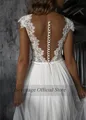 Sale Sevintage 2020 Illusion Scoop Boho Wedding Dresses Cap Sleeve Lace Appliques Bridal Dress Sheer Back with Buttons Robe De Mariee
